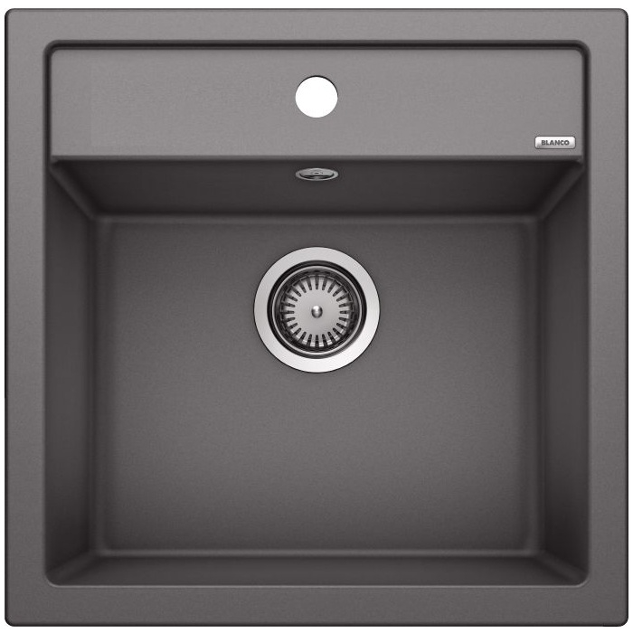 Flott Silgranit-vask med rene linjer og et praktisk bakpanel med forborede hull som enkelt kan slås ut hvis man ønsker en såpedispenser eller lignende.