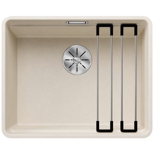 Kjøkkenvask i silgranitt med stor kum. Vasken har en smart integrert avsetningskant, som passer til de medfølgende ETAGON skinnene. På denne måten kan man arbeide i flere nivåer i samme vask. Velutstyrt med C-overflow® overløp og InFino® avløpssystem, som er elegant integrert og lett å vedlikeholde.