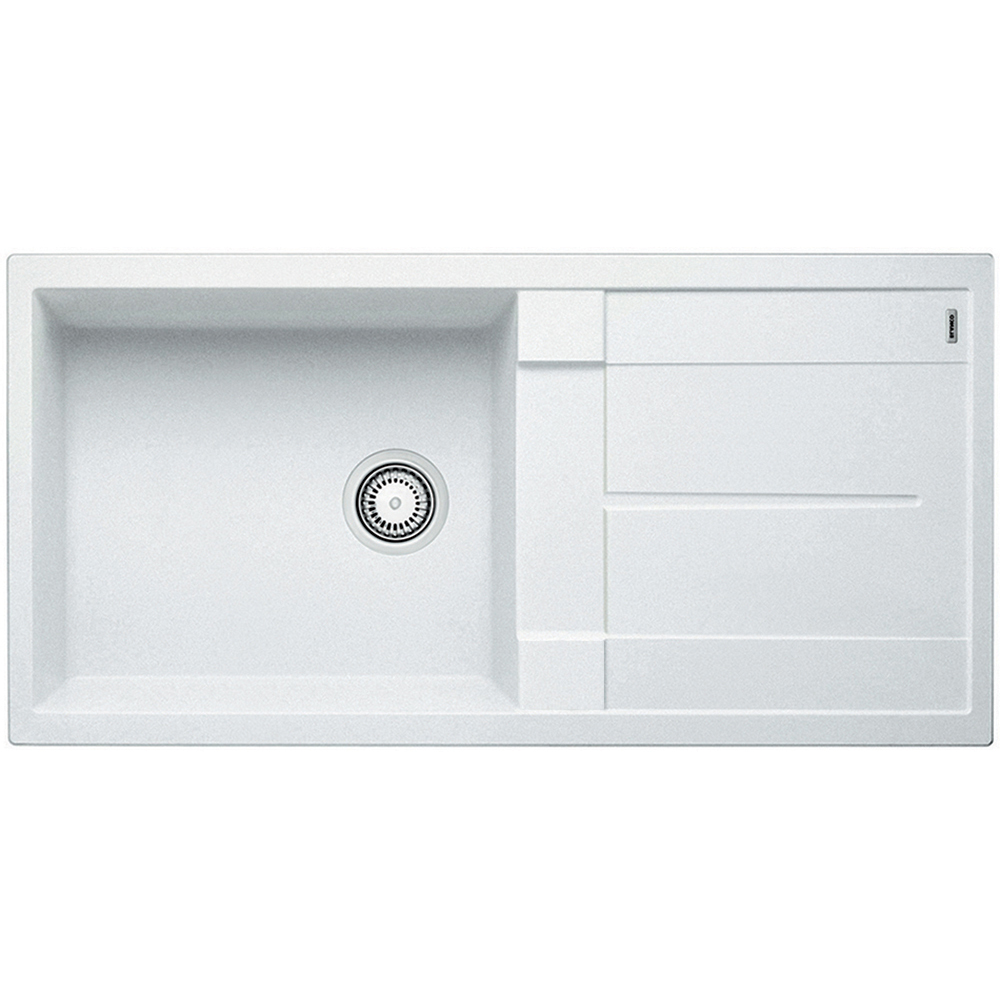 Stor silgranitt vask med avrenningsplate. Designet har rene enkle linjer.