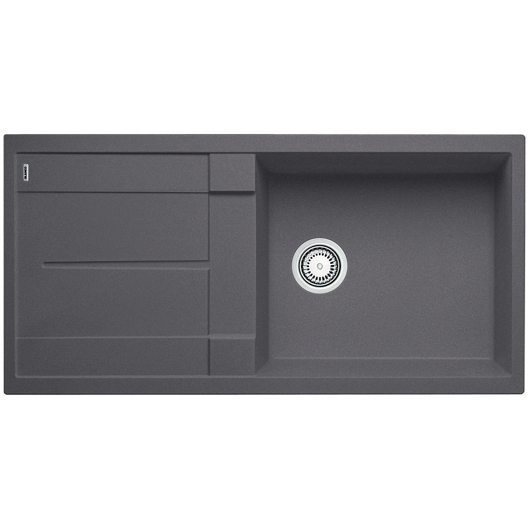 Stor silgranitt vask med avrenningsplate. Designet har rene enkle linjer.