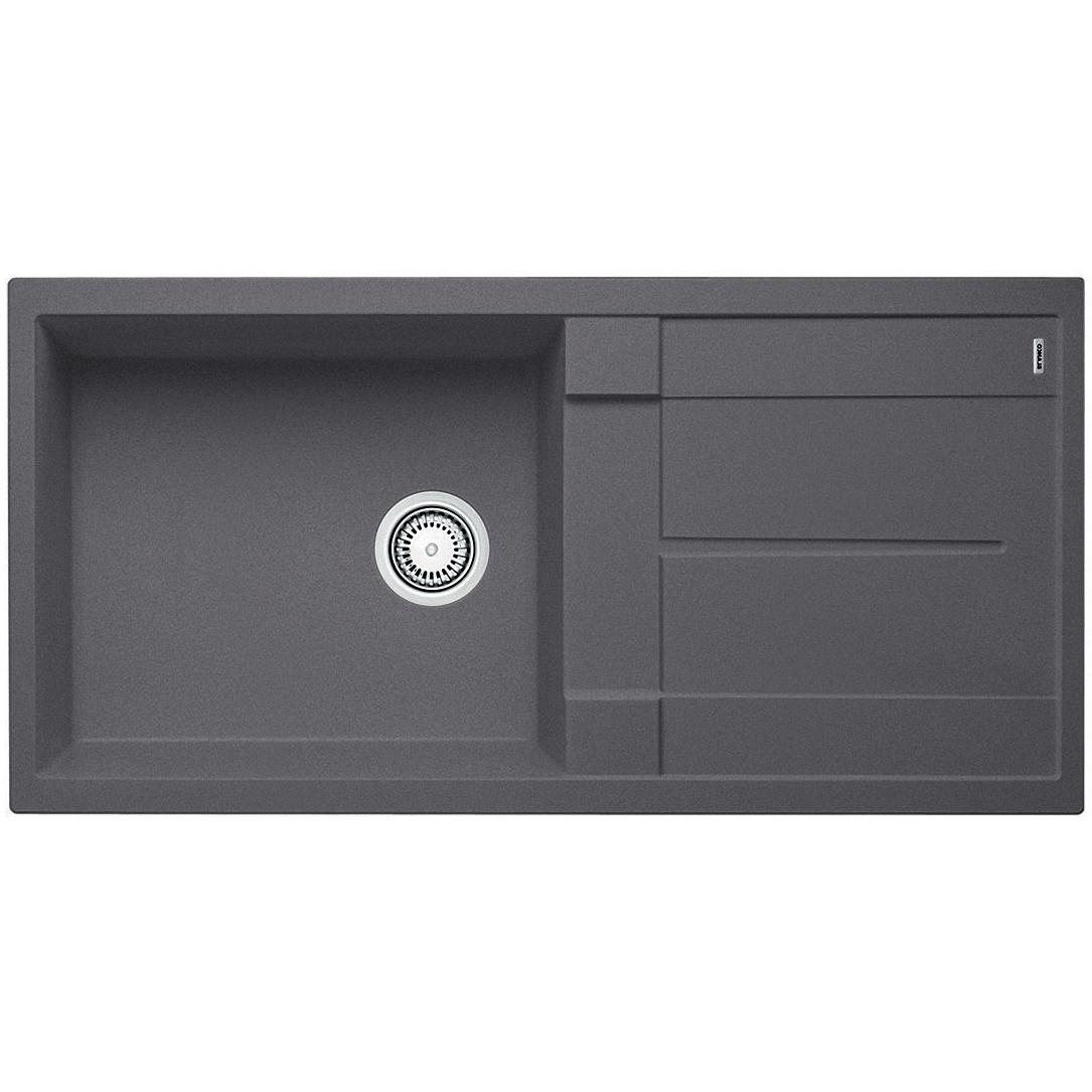 Stor silgranitt vask med avrenningsplate. Designet har rene enkle linjer.