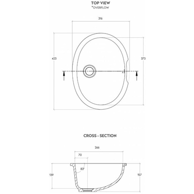 Oval servant i Corian. Corian er et mye brukt materiale til bad og er lett å vedlikeholde.