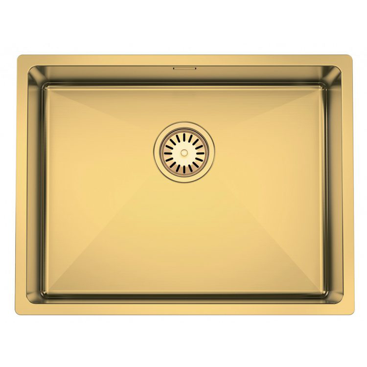 Flott og helt enkel stålvask. Hjørnene er lett avrundede, for å gjøre vasken rengjøringsvennlig. Stålvasken er behandlet med en film av keramisk nitrid, som kalles PVD. I tillegg til den flotte fargen, gir PVD også stålvasken en holdbar og motstandsdyktig overflate.