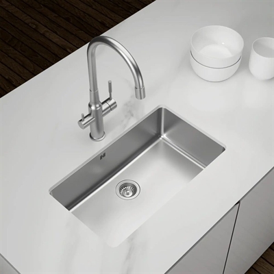 Veldig flott og helt enkel stålvask. Designet er stramt og med rene linjer.