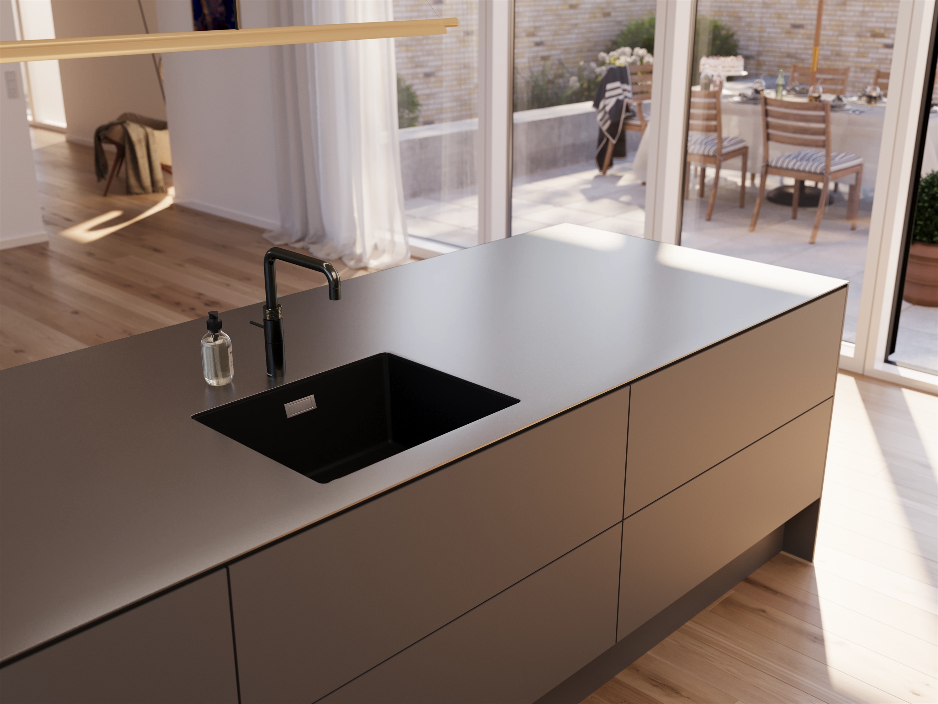 Skjøter og vask kan sveises, så overgangen ikke blir synlig - benkeplaten fremstår som en helhet.