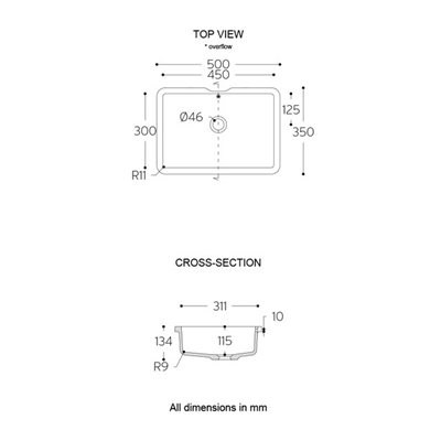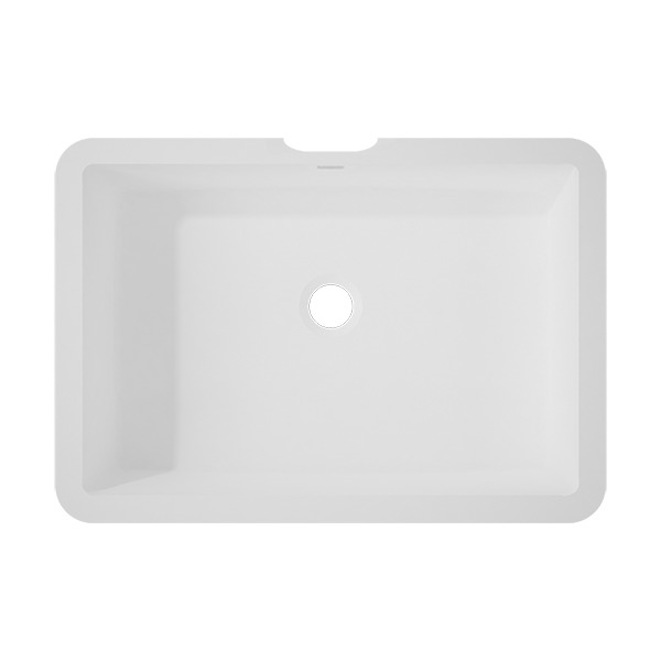 Firkantet servant i Corian. Corian er et mye brukt materiale til bad og er lett å vedlikeholde.